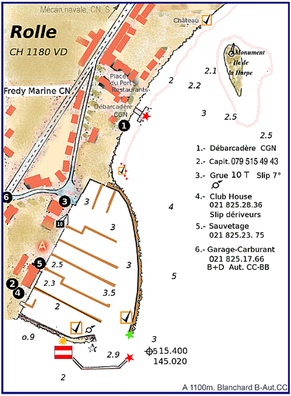 | 2018 | ROLLE, le nouveau port de ROLLE est terminé. La nouvelle configuration est déjà dessinée sur la carte 2017, mais pas encore sur le Guide 2018. Voici donc un extrait de la carte. |